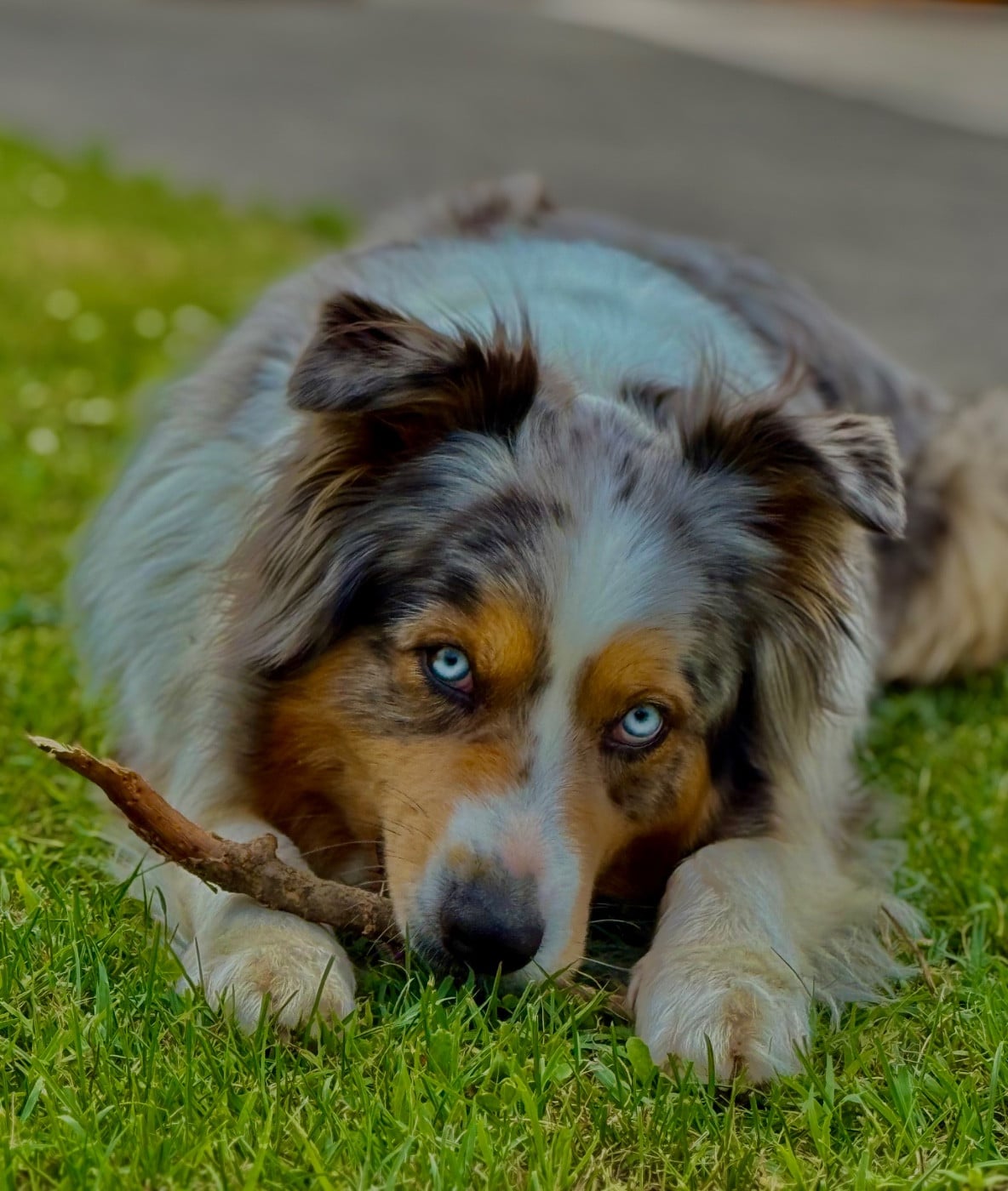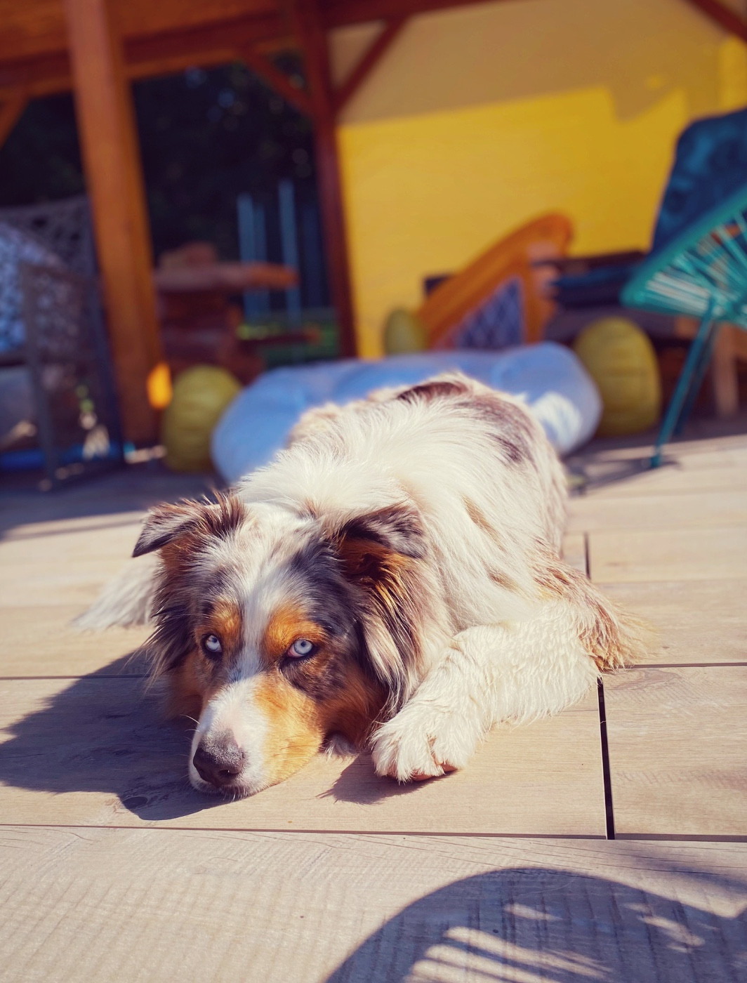 Robe bleue merle et aux magnifiques yeux bleus. C'est ma première chienne, c'est elle qui est à l'origine de l'élevage Berger Australien du Vercors. Elle restera mon coup de coeur, ma première histoire. Elle est née le 27 Octobre 2021. D'un caractère parfait à mes yeux, elle s'adapte à tout. Très bien équilibrée tant physiquement que psychologiquement. C'est une chienne à tout faire !