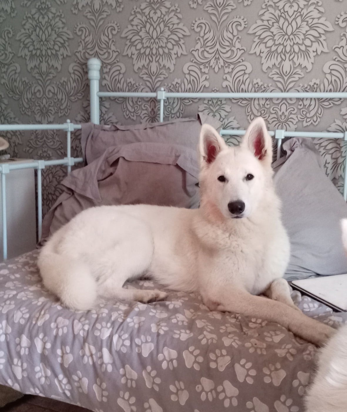 Née chez nous d'Athos et Koumi le 11 février 2025, Dorcas est une jeune Bergère Blanche Suisse au pedigree exceptionnel, déjà prometteuse à bien des égards.