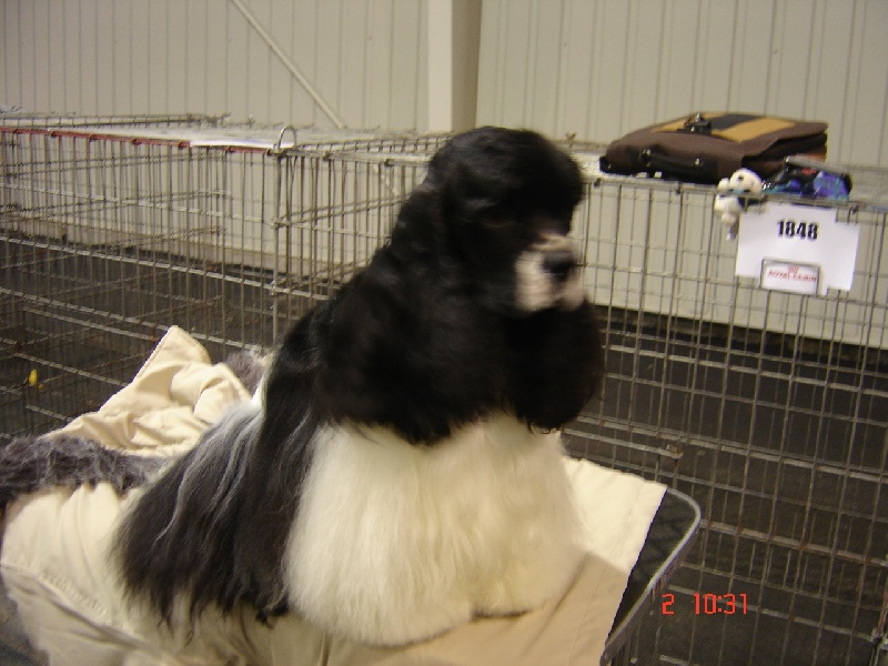bel ensemble - présenté dans une bonne qualité de poils - excellente fourrure - belle proportion de tête - bel oeil bien expressif - belle oreille avec attache fine - excellente encolure - belle épaule - dessus solide - excellente angulation à l'arrière - excellent pied - coprs bien proportionné