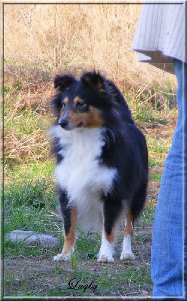 Aspect général : excellent. Grande chienne. Poil/couleur : excellent. Tête/denture : excellent. Corps : excellent dos, pourrait avoir plus d'os. Membres antèrieurs : excellent. Membres postérieurs : excellent. Fouet : excellent. 14 mois.