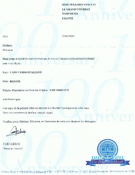 Chien Cane Corso CH. Bastos (Sans Affixe)
