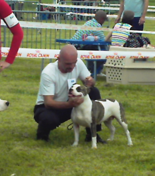 Bon type, TB taille trop lourde, tète puisante Bonne expression Dentition correcte, ossature puissante, Bonne angulation, taille peu marquée, arrière main avant main étroites, TB caractère + tempérament