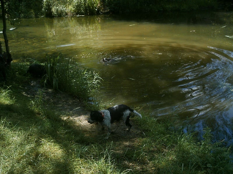 assez bonne chienne dans son ensemble, la face n'a pas encore pris toute sa puissance, oreille droite un peu flottante. DCC bien blanche mais fine, déjà bon poitrail, Exc aplombs et pieds, la poitrine n'est pas terminée. Légères mamelles, exc arrière main, marche très bien devant mais l'arrière main manque de verticalité en mouvement