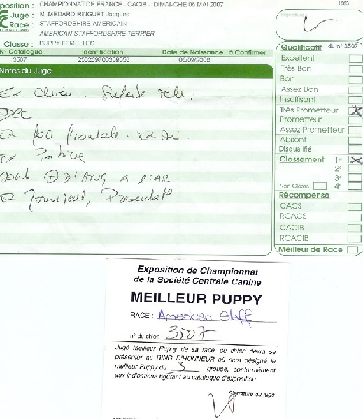 Ex chienne, superbe têteDccEx face frontale Ex DosEx poitrineEx mouvement, Ex présentationPs: Dommage que l'on a pas entendu pour le ring d'honneur resultat on est arrivés et c'etait finit!