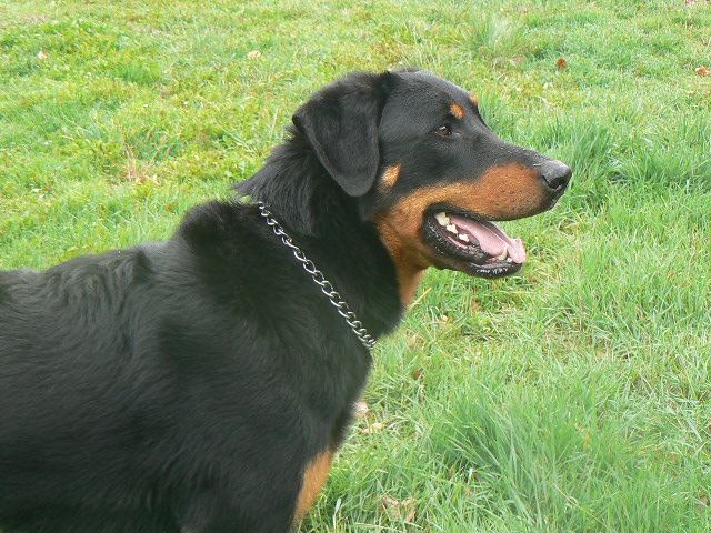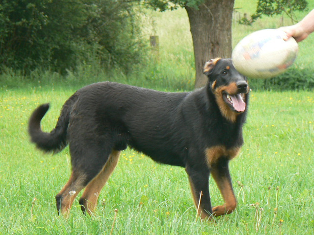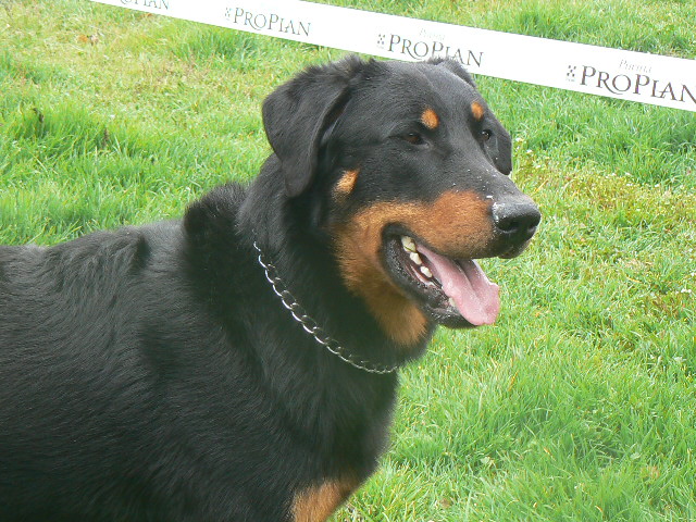 Beauce est un mâle très calme. Expressif, je le comprends rien qu'en regardant ses yeux. C'est le fils de la Championne de France Rêveuse des Assiers (Elite A) et du Champion de France et Champion du Monde Uarrior de la Noé du Jardin (Elite A). Il est très câlin et adore partir en promenade (si j'oublie de fermer la porte de la voiture, il est sûr que Beauce sera monté dedans!!). Il est coté 3 (morphologie Excellent et test de caractère Excellent en régionale d'élevage, indemne de dysplasie A/A)
