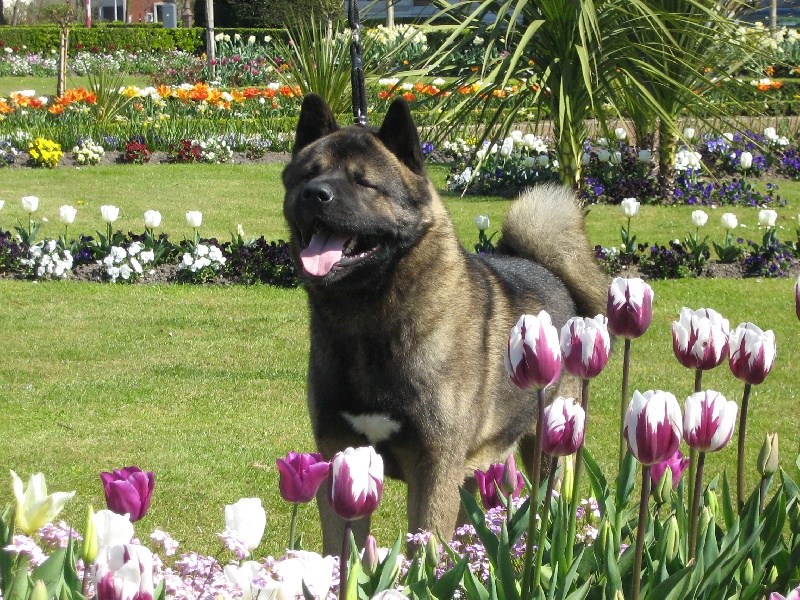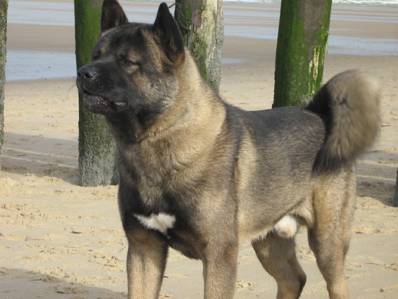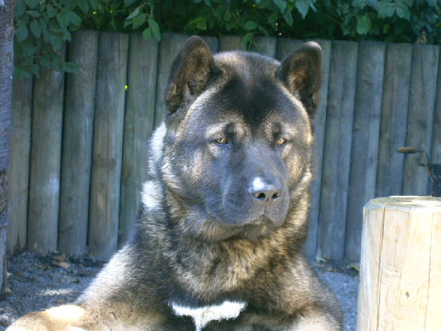 Derrière une apparence imposante AMAKI de son petit nom Kikou cache un caractère en or,, ce qui fait souvent craquer les visiteurs lorsqu'ils nous rendent visite. De plus, sa tête est, selon les juges, une des plus caractéristiques en tant que représentant de l'Akita Américain. Compagnon de tous les jours, il ne manque jamais de nous étonner de part sa facilité à vivre et sa gentillesse...