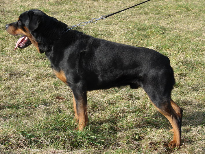 VALMY de la vallée des trois rivières est un chien rottweiler mâle de bonne composition et d'une bonne morphologie. Chien joueur , très nerveux et robuste. Chien dont la tête est très marqué.VALMY manque encore de maturité,il a que 2 ans.