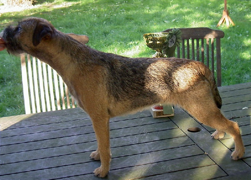 Excellente tete feminine oreilles bien portees et bien placees TB epaule excellente encolure tete et poitrine exc longueur de reins et ligne du dessus tb ang ar ,superbe qualite de poil exc peau mouvement de profil d'excellente ampleur exc parallellisme arriere superbe expression