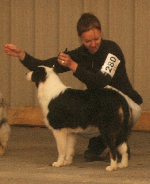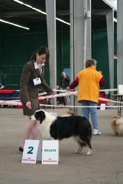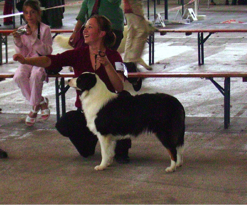 8 mois,Bien nourrie,ossature légère,denture en ciseaux,bonnes allures,derrière assez raide.Note personnelle : La juge a été très cool avec la miss, car elle s'est montré très désagréable pendant le jugement ! Caractère encore a travailler ...