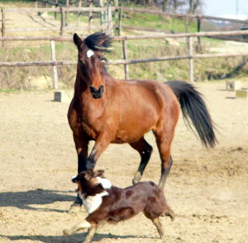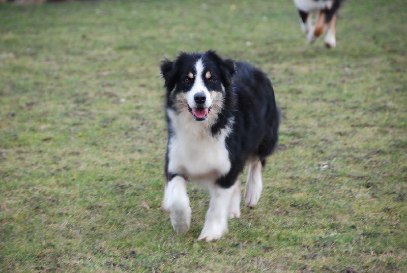 Sa joie est tellement grande qu'à chaque sortie qu'elle laisse exprimer son enthousiasme. Avec ses congénères, elle ne sait pas s'imposer et souffre parfois des humeurs de ses congénères.