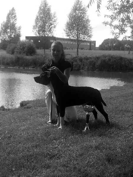 Jolie tête avec bon stop, beau rapport chanfrin, Exc oeil bien implanté de bonne forme, belles oreilles, bonne encolure,angulation AV et AR correct, bon fouet, jolie ligne de dessus, doit encore se développer jeune sujet.