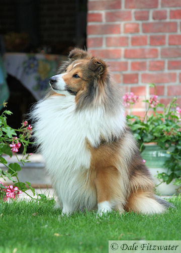 Chien Shetland Sheepdog karmidale Jazz singer avec fleurdemai