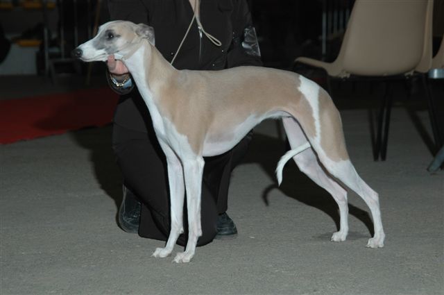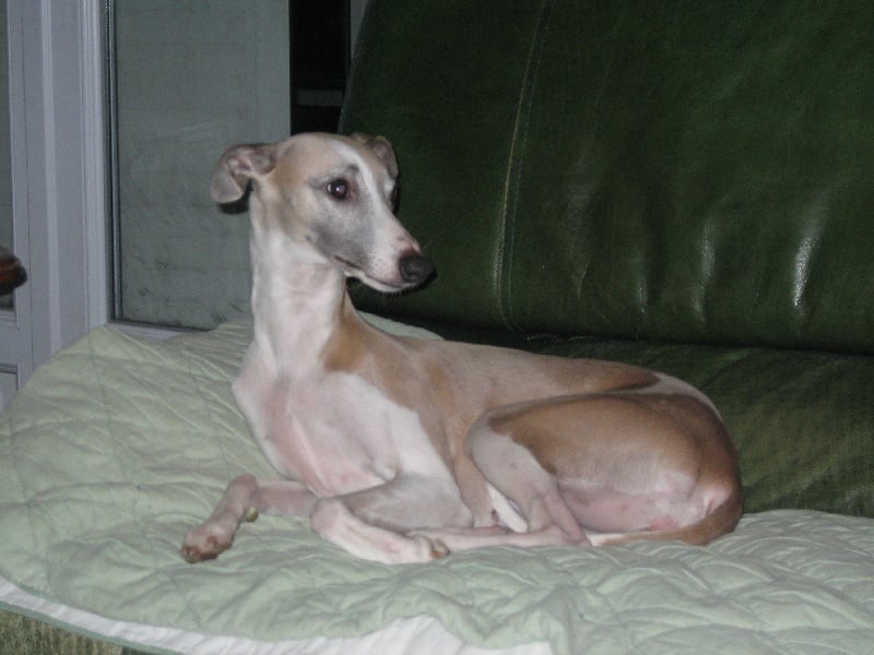 Très jolie whippet, douce, câline, aimant aussi bien le canapé que les grandes ballades en forêt et les compétitions de PVL où elle excellait.
