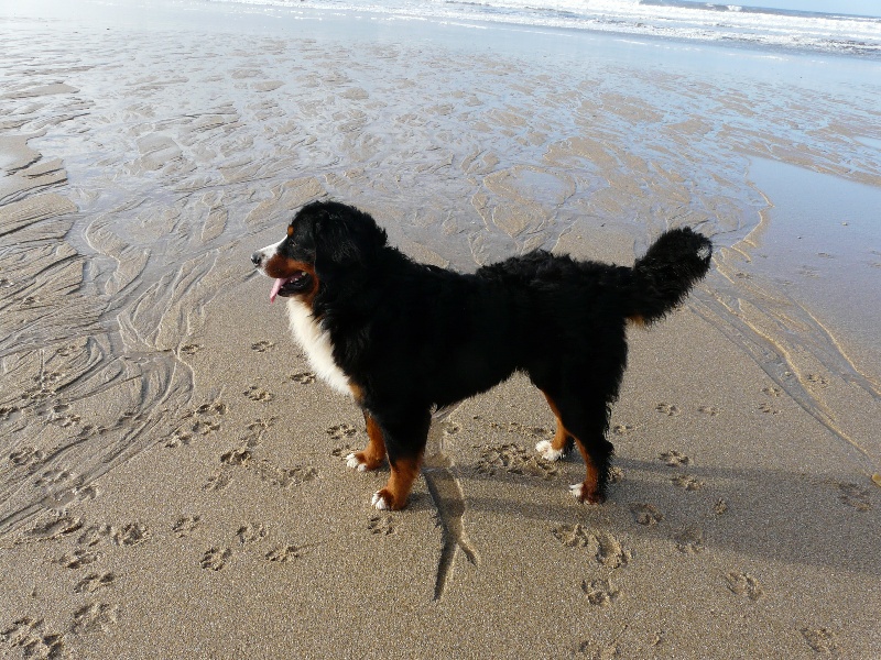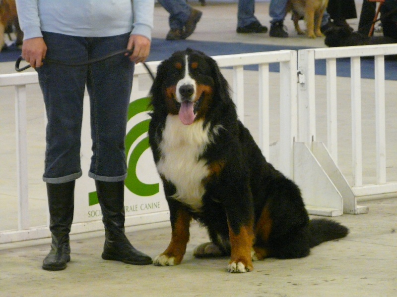 DCC, bonnes répartitions des couleurs tête tb typée, exc oeil stop chamfrein,oreilles bien portées, exc avant main et aplombs, exc dos et poitrine, arrière main très légèrement panard, exc démarche et allures.