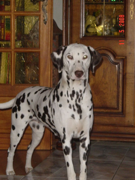 Très jeune chienne (6 mois), tête fine, bonne angulation, très belles tâches, en croissance, bon caractère.