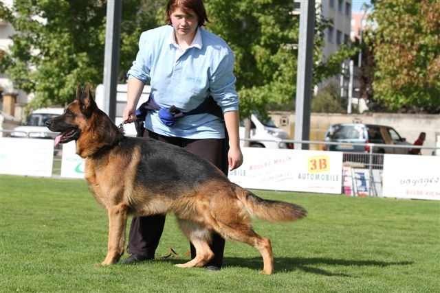 TRES BONNE TETE BIEN EXPRESSIVE-BON PORT D'OREILLE-DOS MUSCLE-EXCELLENTE CROUPE-POITRINE BIEN DEVELOPPE-TRES BON MOUVEMENT.C.A.C.I.B = CERTIFICAT D'APTITUDE AU CHAMPIONNAT INTERNATIONALE DE BEAUTE - C.A.C.M = CERTIFICAT D'APTITUDE AU CHAMPIONNAT MONEGASQUE DE BEAUTE -