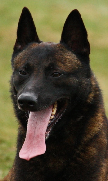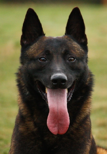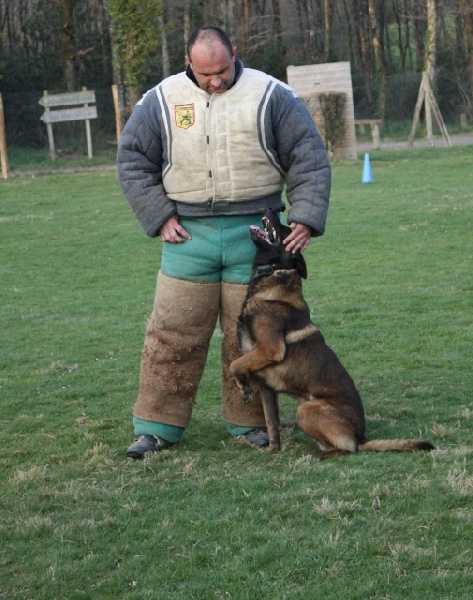 C'est un chien charbonné, au fort caractère, ce qui ne l'empêche pas de vivre en famille. Il est d'un gabarit moyen, il a un mordant " fond de gueule" qu'il a transmis à ses BB (saillie effectué avec une fille de Larry de Vulcain).
