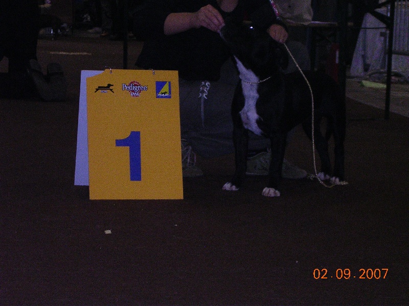 Machoire en ordre, dans le standart grande et puissante, forte ossature, bien angulee devant angulation arriere suffisantepoitrail deja bien ouvert avant typique EXC dessus avec garrot montant arriere un peu raidejolie tete crane large masseteres bien developpes museau de bonne longueur et puissant EXC stop oeil, oreilles et expression