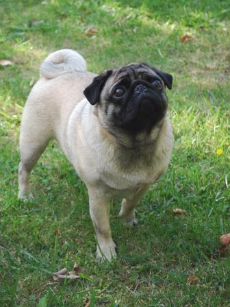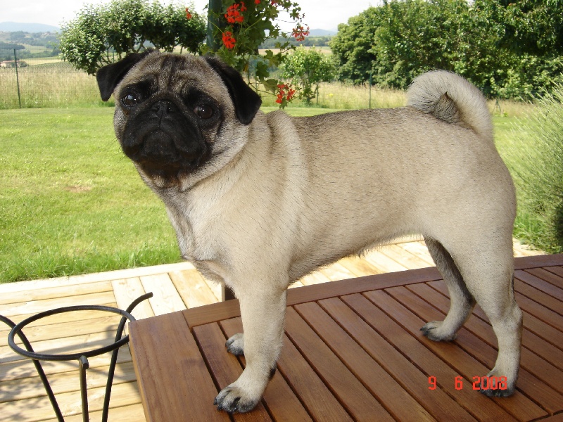 Tête bien ridée - Oreilles fines en boutons - oeil foncé - narines ouvertes - Bonne pigmentation - prognathe Av Train solide - chienne COB - Bonne ligne dos Fouet Bien bouclé - Arrière Train muscléBonne démarche et présentation