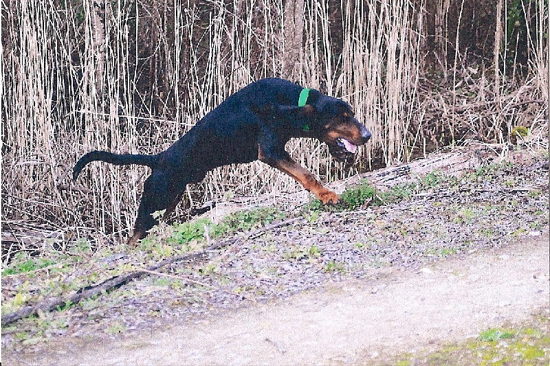 Les chiens sont découplés sur des semis.Très rapidement ils pénètrent dans un grand bois en se récriant. Un lièvre est lancé et chassé sur une courte distance dans les bois. Un défaut se produit,un lièvre gicle devant un conducteur et une belle chasse s'ensuit entrecoupée de balancer,relevés parfois avec difficultés. Taquine et Aldo se font remarquer par leurs prises d'initiatives a relever les défauts.