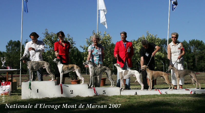 Tendresse (fille du réserve CAC au Ch du monde 1995 le multi Ch O ' Malley du Chawia et demi sœur du Ch du Monde 1995 (fils de O'Malley) et Meilleur lévrier de toutes les variétés ce jour là).