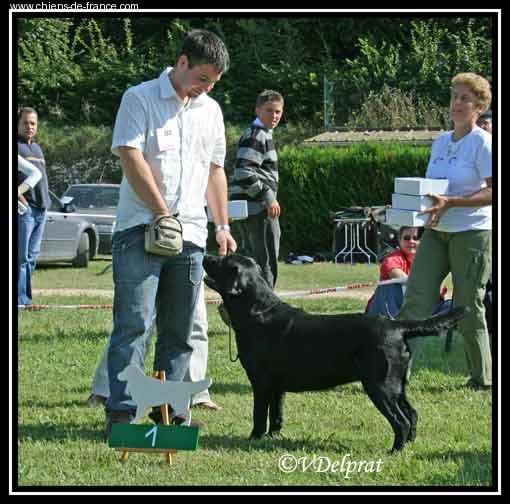 Noire de 16 moisBelle tête et jolie expressionBonne nature douceBelle couleur d'yeuxPieds, épaules,ligne de dos, OKBonne arrière mainElle bouge bien mais lentement