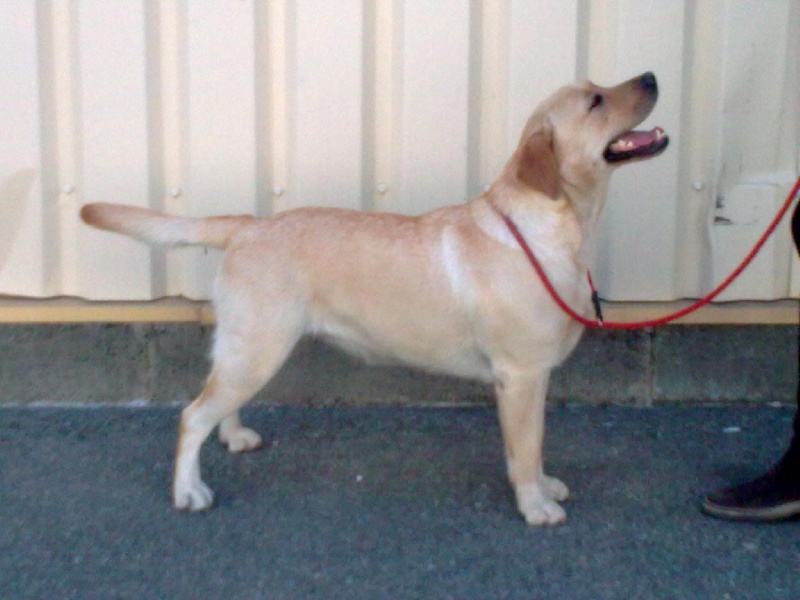 2 years old yellow. good in head,good neck and shoulder.exc top line. i would prefer a better tail set a tail.stiffle is ok.good a deep in chest.front angulation is good.moved well but without enthousiasm.
