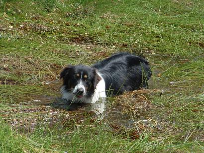 Récemment mise en contact avec les moutons, elle dénote un interêt certain pour la gente ovine...