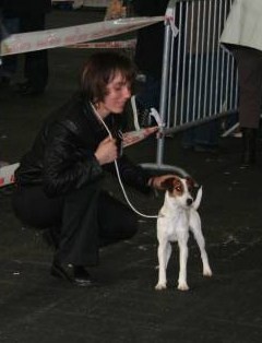 SPECIALE DE RACE - Classe Puppy (6/9 mois)Dentition en ciseaux - très jolie tête ciselèe feminine - exc pigmentation & oeil - très bonne sortie d'encolure - exc épaules applombs pieds poitrine côtes - 32/40 - exc dessous, attache de fouet et fouet naturel - bonne cuisse & arrière main - exc poil dur - marche très bien.