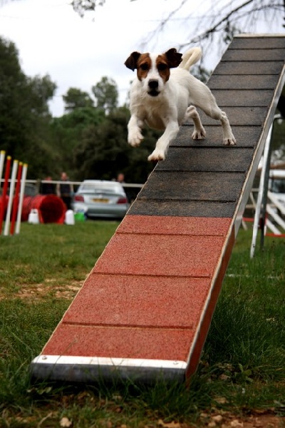 Excellente chienne d'agility, Glossy est un vrai élastique : elle saute des hauteurs impréssionnantes, fais demi-tour quasi sur place, tout cela en un dizième de seconde. Très proche de sa maîtresse, c'est une chienne caline, qui adore les siestes communes sur le canapé ! Un type de tête particulier, un vrai corps d'athlète, son seul defaut serait sa timidité parfois excessive, mais elle progresse, dans la douceur, de jours en jours... Glossy débutera l'agility en compétition en mars 2010 : A suivre !