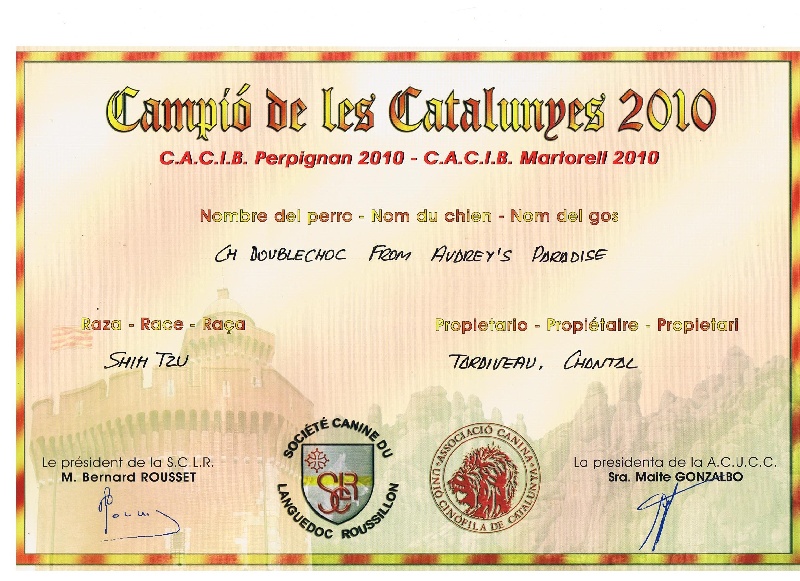 - 1ER EXC.CL.CHAMPION+CACIB+MEILL.DE RACE+MEILL.DE GROUPE+CHAMP.DES 2 CATALOGNES