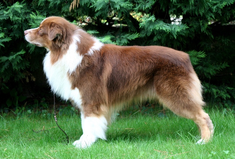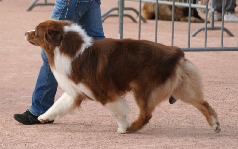 Excellente tête; Excellent oeil (forme et couleur); Excellentes oreilles bien implantées et bien portées; Très bonnes proportions; Excellent dos; Bonne croupe; Excellente poitrine; Excellente angulations; Excellents mouvement et allure.