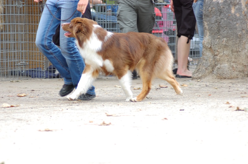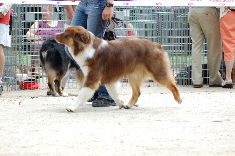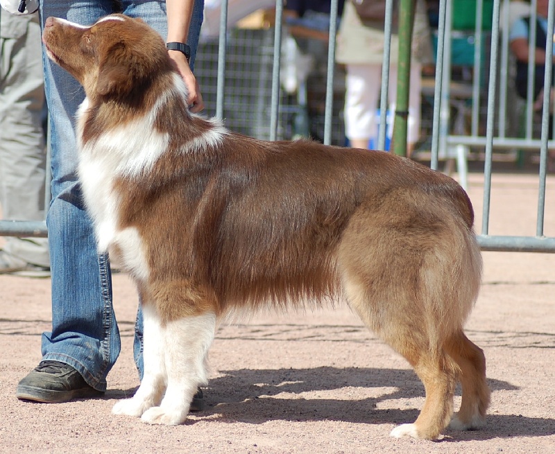 Dentition en cisaille, en formation. Chien de bon type et de bonne taille. Tête très juvénile, manque de finitions, un peu féminine. Excellente ossature. Le pied pourrait être plus court. Applombs avants légèrement panard. La croupe est légèrement surellevée. Mouvement régulier, le dos plonge et manque de fermeté.