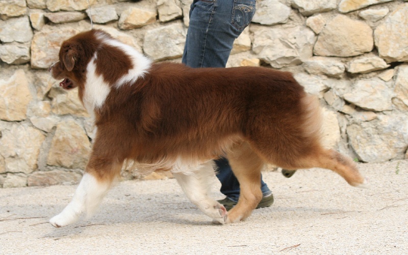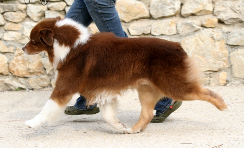 Sujet de bonne taille, masculin, sans lourdeur. Tête bien proportionnée. Très bonnes oreilles. Très bonne avant main. Excellente ligne de dos. Cuisses de Bonnes largeur avec jarrets marqués. Marche bien aller-retour. Pourrait être plus berger.