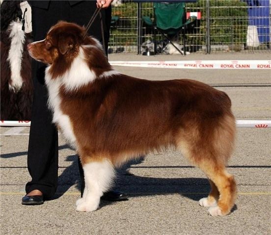 Excellent sujet bien dans le type demandé; ensemble solide avec une excellente présentation; Excellente tête expressive; Excellentes oreilles; DCC; Bien pigmenté; se déplace bien a l'aller-retour; magnifique mouvement latéral; Belle fourrure.