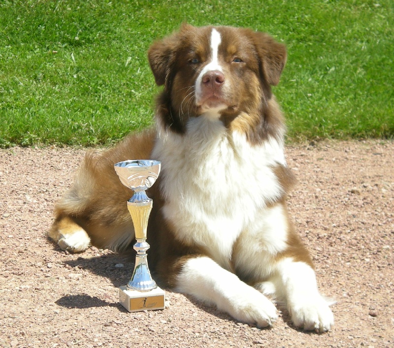 DCC; Très bonne tête avec un bonne expression; Bonnes oreilles bien placées; Crane un peu rond; Très bonne encolure; Ligne de dessus régulière; Très bonne poitrine; Très bons aplombs; angulations suffisantes; Très bonne pigmentation; Bonne position naturelle. Très bonne démarche.
