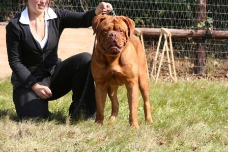 8mois-déja puissant avec exc ossature-construction en pleine croissance-bonne angulation avant et pieds-exc poitrine bien formée;tête type avec oreilles belle formes attachées haut-crâne plat et déja large-stop marqué avec front haut-exc expression chamfrein bonne longueur,babine bien dessinée exc truffe saine