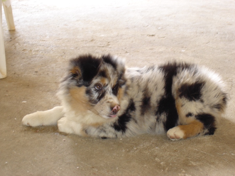 Aquarelle donne de l'os et de la taille. Elle donne des chiots bleu merle aux yeux bleus.