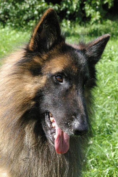 Ce mâle d'un excellente construction courte aux lignes bien suivies commence la mue.Il a une bonne couleur fauve bien chaud et la fourrure est de bonne texture.La tête médioligne est expressive mais le front est un peu bombé.La ciselure est bonne mais le neze st un peu pincé à son extrémité.Excellent oeil foncé.Les oreilles sont un peu larges à la base,bien portées mais pourraient être plus haut placées sur le crâne.Denture complète en pince très juste.Il a un excellent corps court,avec unebonne encolure dégagée suivi d'un bon dos bien ferme.Bonnes angulationsarrière,juste à l'avant.Poitrine bien développée.Bons pieds.Bon aplombs.Bonne ossature.Se présente avec beaucoup def ierté et de pétulance.Fouet bien porté .Aux allures les coudes sont très serrés