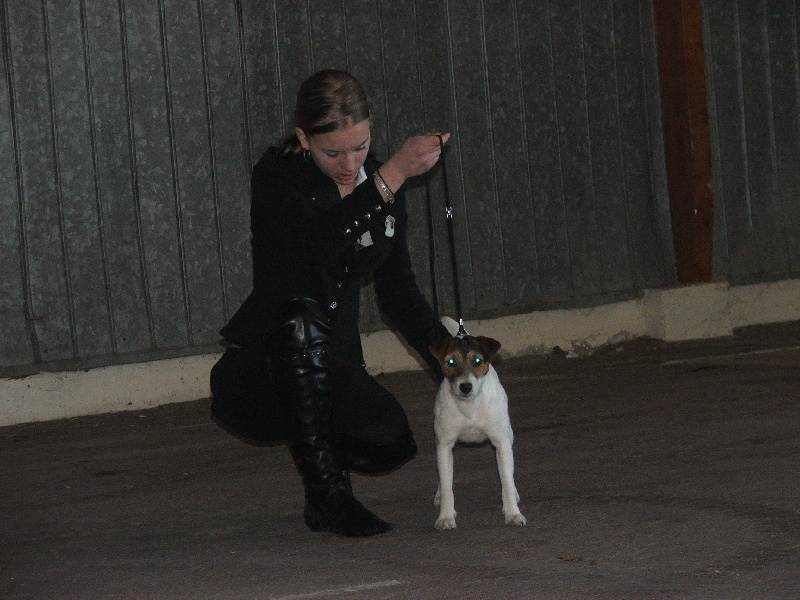 Très joli petit modèle poil dur, très nerveux, examen des dents délicat : DCC, jolies oreilles, structure d'ensemble bien construite mais pas terminée, bon port de queue, beau sujet qui doit apprendre à se présenter, il pourra alors accéder à de trés bons classements