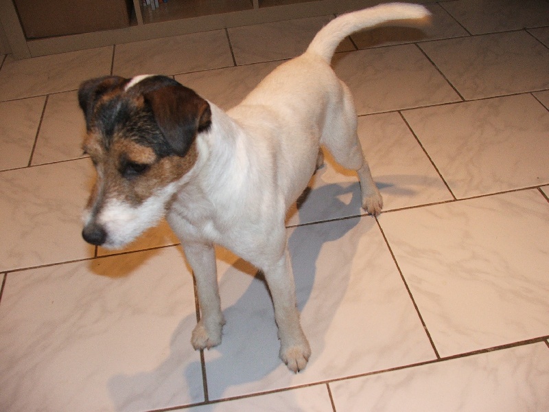 taille : 36 cm, TP : 43 cm, poil dur tricolore, DCC belle tête, excellentes oreilles, marche bien