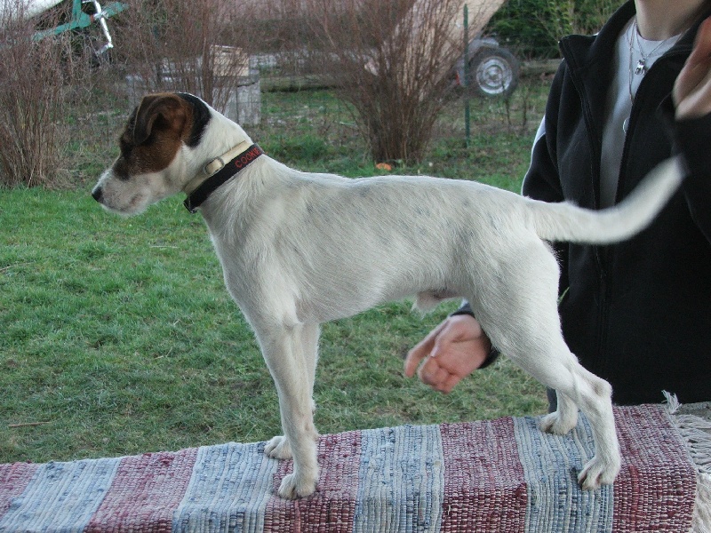 poil dur ; très bonne DCC ; oreille gauche légèrement en arrière ; belle robe bien nette ; fouet sérieusement écourté bien porté ; bonne poitrine ; mouvement vif et régulier typique de la race