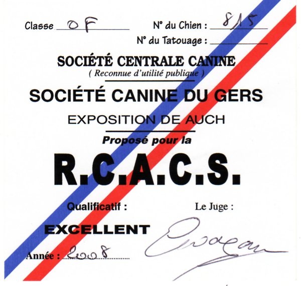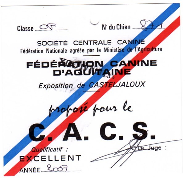 - Classe ouverte : 1er Excellent CACS