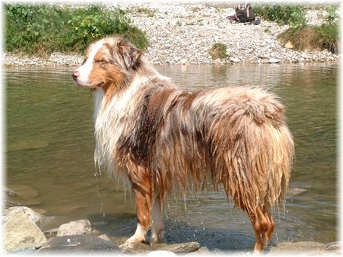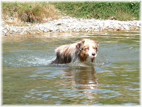 Il démontre qu'on peut être beau et bon ! Il est d'une obéissance parfaite ! En extérieur il est mon bras droit pour garder les bélantes au paturage (je n'ai pas des cloture partout), droite, gauche, stop , dérriére, doucement, il a assimilé tous ces ordres en un temps record! Il est passionné par le fait de m'aider, un vrai plaisir de l'avoir a mes côté. Une attitude touijours positive, l'humeur imanquablement au beau fixe, il est joyeux comme c'est l'être l'Aussie !