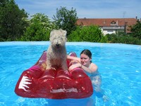 Anice est vraiment la chienne dont on peut rêver. C'est elle qui nous a donné la passion pour la race, de par son caractère totalement génial et l'attachement qu'elle a pour nous, ses maîtres. C'est une crème avec les gens et avec ses congénères. Elle est très sociable, aime tout le monde et se laisse parfois aller à des débordements de joie. Elle adore courir dans les champs mais se contente aussi de bonnes grosses siestes près de ses maîtres. La seule chose qu'elle apprécie peu, ce sont les expositions. Rien de tel qu'un week-end tranquille avec toute la famille.