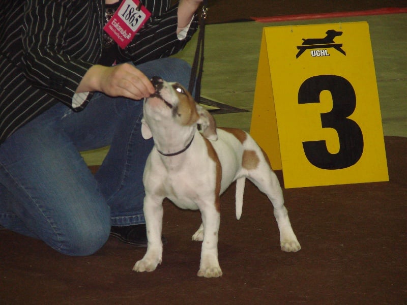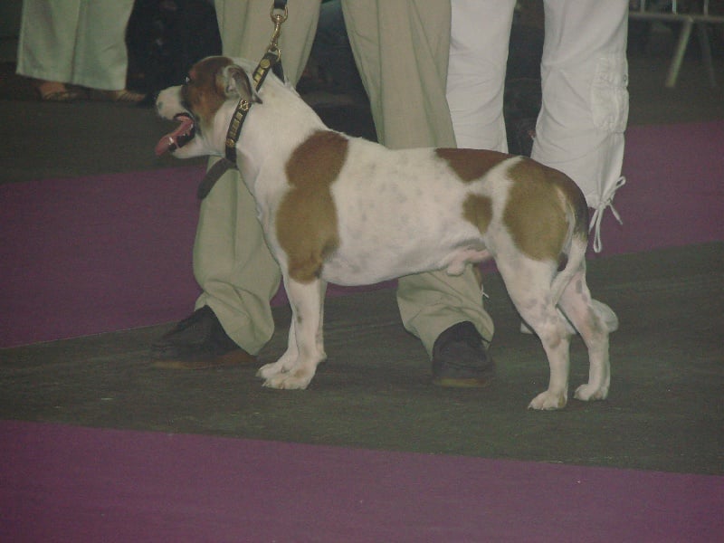 Chien puissant.tb proportion en tete oreilles.ex oeil,denture,encolure.tb ligne de dos.poitine large.ex cotes,ossature puissante.tb aplomb et angulation.tb dynamique