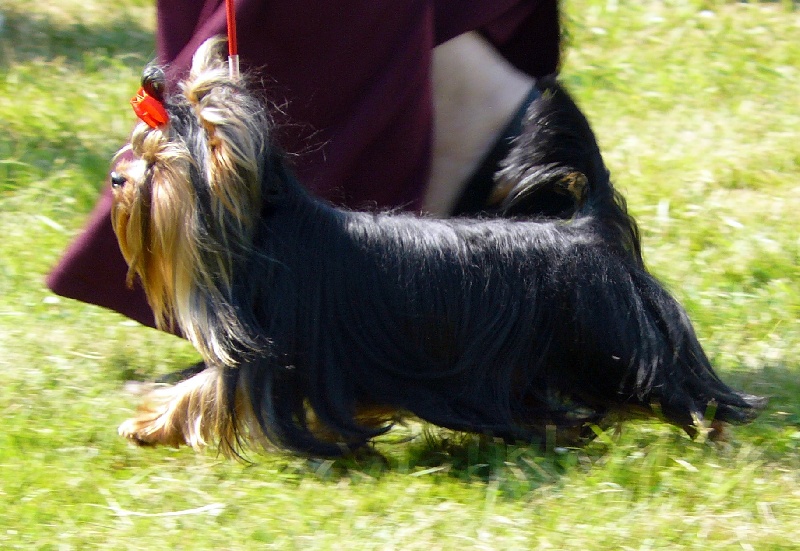 Joli petit sujet, 2kg 400. Jolie tête expressive, oreilles très bien portées. Oeil foncé. Poils de bonne structure. Très foncé en couleur. Ongles un peu longs. Mouvement vif et régulier avec un très bon dos. Bon port de fouet.