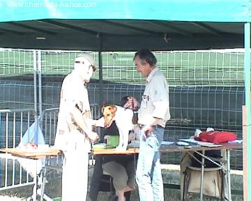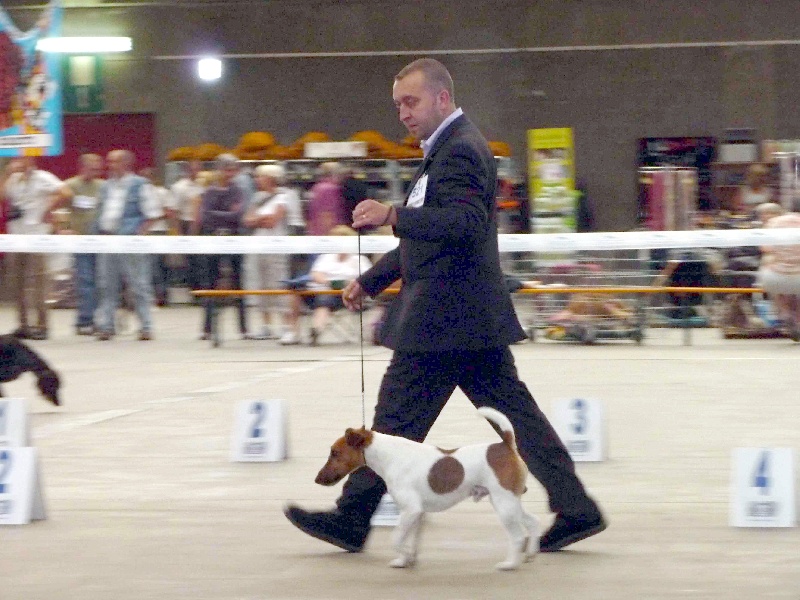 Exc. chien dans l'ensemble-Exc. ossature,petit volume-Exc. crâne-Belle expression-Dcc-lèvressèches bien pigmentées-Yeux bonne forme et couleur-Exc. port d'oreilles-Belle sortie d'encolure-Dos court bien solide-Exc. port de queue-Poitrine bien développée-Exc. av et ar mainReins bien musclés,légèrement arqués-Exc.pied,doigts bien cambrés-Exc. robe,mouvement,caractère.