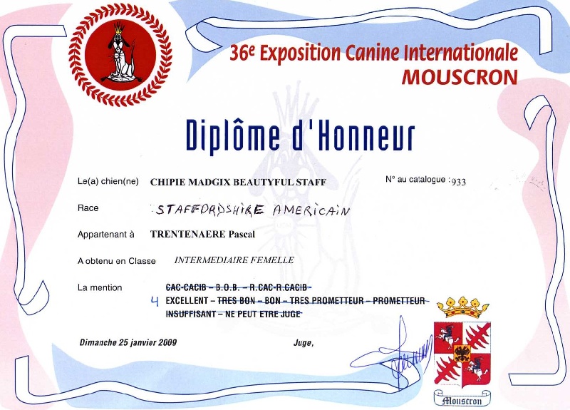 <img src="http://serveur1.archive-host.com/membres/images/158629144/coupe3fixe.gif" alt="Fichier h�berg� par Archive-Host.com"><img src="http://serveur1.archive-host.com/membres/images/158629144/france.gif" alt="Fichier h�berg� par Archive-Host.com">Pour sa deuxième prestation en expo CHIPIE a obtenu son 2ème excellent classé qui est retenu pour sa cotation 4,pour devenir une future reproductrice "RECOMMANDEE"...