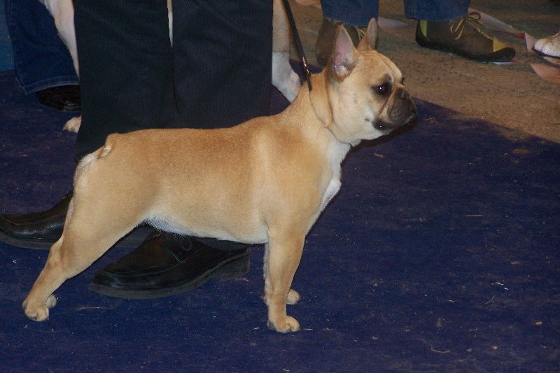 exc sujet, bonnes proportions, exc crâne, exc oreilles, exc yeux, exc truffe.exc dentition, exc avant main, exc poitrine et ligne de dos. TB post, jolie robe, exc démarche.